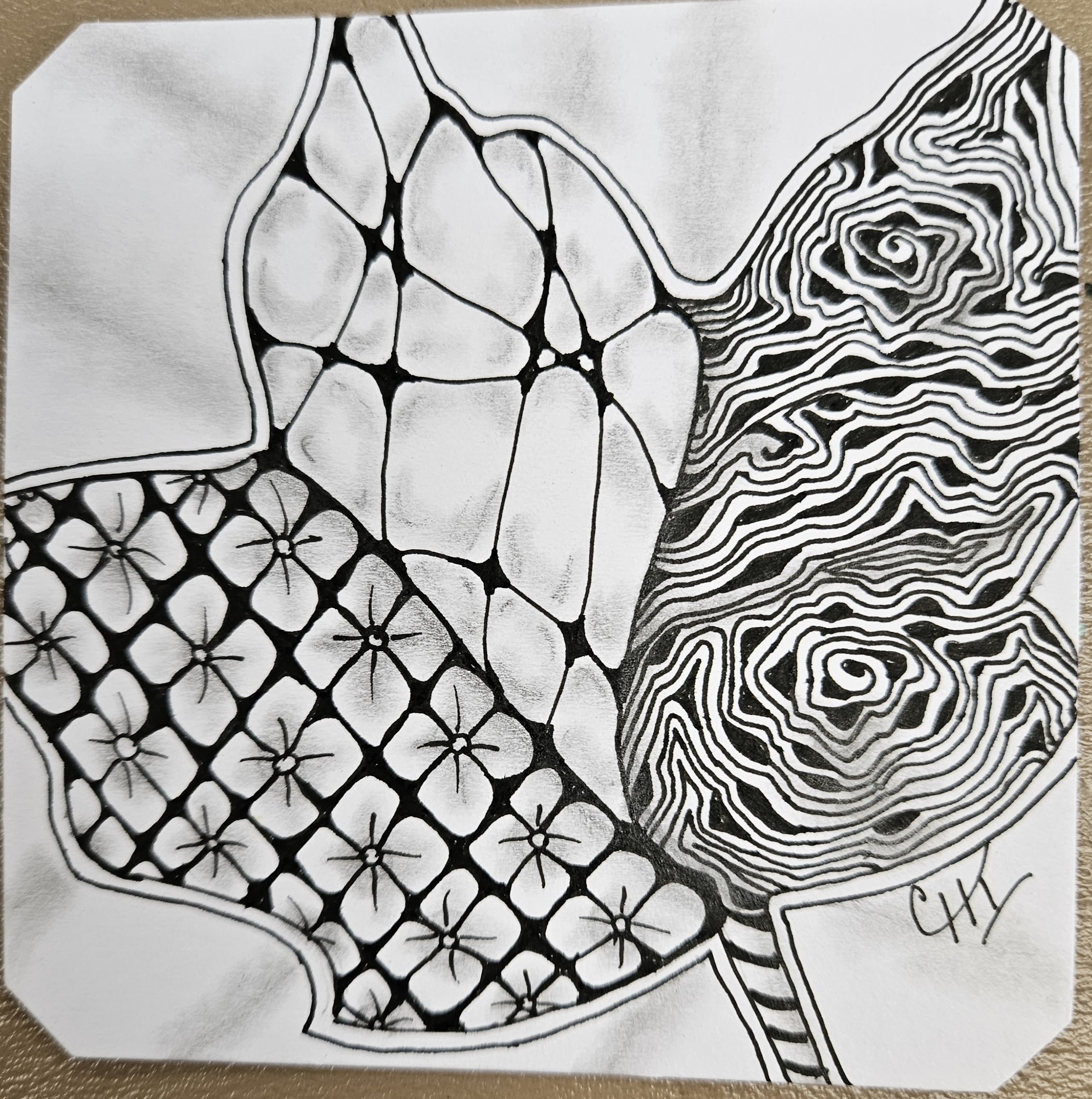 I get lost in time and space when I tangle. Focusing on process rather than product allows me to relax, let go of my perfectionism and allow my creativity to flow. But when I teach others in The Zentangle Method I experience pure joy. The room gets quiet as everyone tangles, working on one pattern after another. While many seem intimidated at the beginning by the end of the class they are oohing and ahhing over their own and other’s creations.
